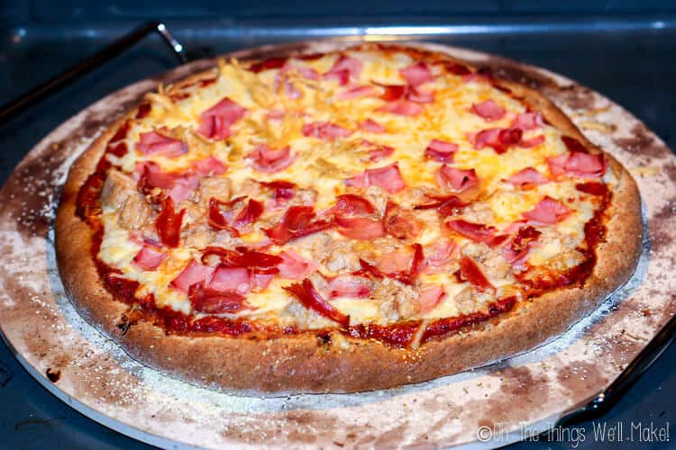 • Bake for another 10-12 minutes, or until your pizza crust is a beautiful golden brown color.